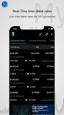Introducing the captivating forex application by Myforexeye - your ultimate companion for all your foreign exchange needs, from forex trading to hedging to financing trade to buying/selling currency for travel to money transfers. Experience a world of simplified foreign exchange services for businesses, individuals, and institutions, all within the palm of your hand!