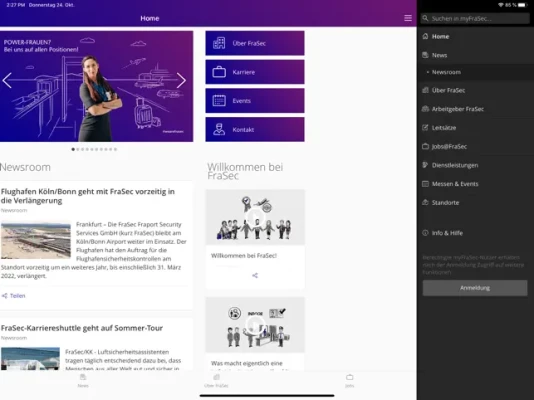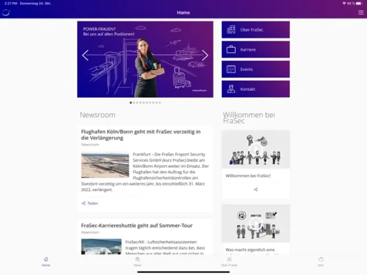 Werden Sie Teil eines starken Teams: Neben aktuellen Stellenangebote und einem direkten Zugriff auf das FraSec-Karriereportal finden Sie in der App auch einen optimalen Überblick über anstehende Messeauftritte und Veranstaltungen.