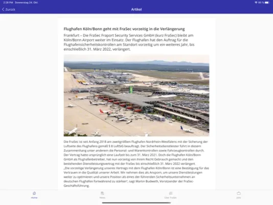 Die App "myFraSec" bietet interessierten Nutzern, Partnern und Medienvertretern eine umfassende Übersicht über aktuelle Unternehmensnachrichten, hilfreiche Informationen rund um FraSec und die verschiedenen Firmenstandorte sowie exklusive Einblick in die spannenden Tätigkeitsfelder im Bereich "Luftsicherheit".