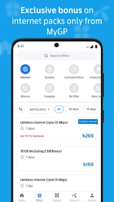 MyGP is the ultimate Grameenphone self-service app for all your telecommunication needs. With MyGP you can avail any internet or minute offer with simple easy steps. There is no longer any need to memorize difficult and complicated codes to activate offers or call the hotline to get customer service.
