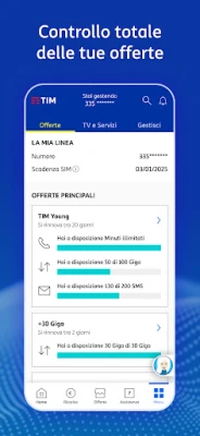 • Verificare le tue offerte per controllare i Minuti, SMS e Giga disponibili
