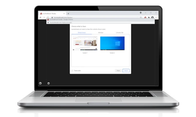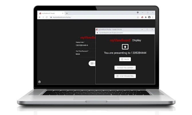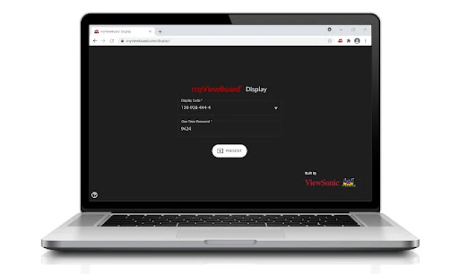 myViewBoard™ Display bir bilgisayara yüklendikten sonra, kullanıcıların ekranlarını kablosuz olarak paylaşmaları için yalnızca bir tarayıcıya gitmeleri ve myviewboard.com/display adresini ziyaret etmeleri yeterlidir- başka bir yazılım yüklemek yok, donanım kilidi yok, sunum sorunları yok.