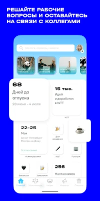 Приложение “На связи” - это самый удобный способ создать и согласовать командировку, найти контакты коллег и узнать новости компании. В "На Связи" также можно начать отслеживать свои шаги и поучаствовать в коллективных активностях (например, рейтинг по шагам среди коллег).