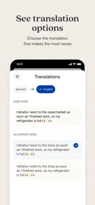 Chat one-on-one or in groups and channels–everyone sees the language they know best. With Native's multi-source translation and AI selection, you get the highest-quality translations for every message. And if you see a translation that doesn't seem right, just tap to view alternate translations.