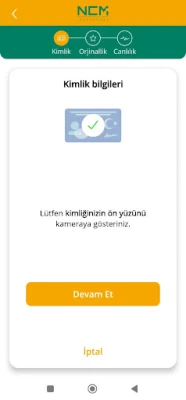 NCM Hesap Aç ile dilediğiniz yerden görüntülü hesap açmak için uygulamamızı kullanabilirsiniz. Yeni nesil çipli kimlik kartı veya pasaport kullanarak gerekli adımları yaptıktan sonra NCM müşteri temsilcisi ile birebir yapacağınız görüntülü görüşme sonrası ileri nesil güvenlik kontrollerinden geçtikten ve yeterli kriterler sağlandıktan sonra kısa süre içerisinde NCM müşterisi olabilir yatırımlarınızı dilediğiniz yerden hızlı ve güvenli bir şekilde yapabilirsiniz.