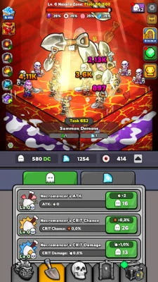 Summon powerful demons to assist your skeleton miners. Use the resources from your mines to upgrade them, making your mining operation even more efficient.