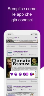 Per essere vicino ai tuoi cari in questi momenti delicati abbiamo creato l’app di Necrologi24, il social dedicato a questo, dove puoi vedere tutti i manifesti e necrologi dei comuni per te importanti.