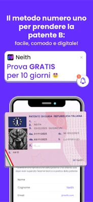 Scarica l’app, registrati e inizia il viaggio verso la tua patente B con Neith.