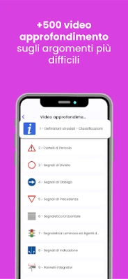 Inoltre avrai a disposizione più di 600 video approfondimento sugli argomenti più difficili della patente B, spiegati in modo chiaro e dettagliato al fine di farti superare con successo l’esame teorico della patente B.