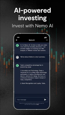 Nemo AI, one of the first GPT powered financial assistants, will give you daily stock portfolio insights, analyse market trends and social sentiments and share stock investing opportunities - so you can diversify your portfolio with confidence. Get instant help for decisions on stocks, shares, and more.