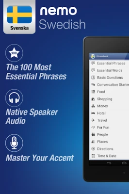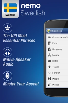 Nemo is designed to start you speaking the most useful words in Swedish immediately and confidently. With millions of downloads from around the world, Nemo is now available for Android phones and tablets.