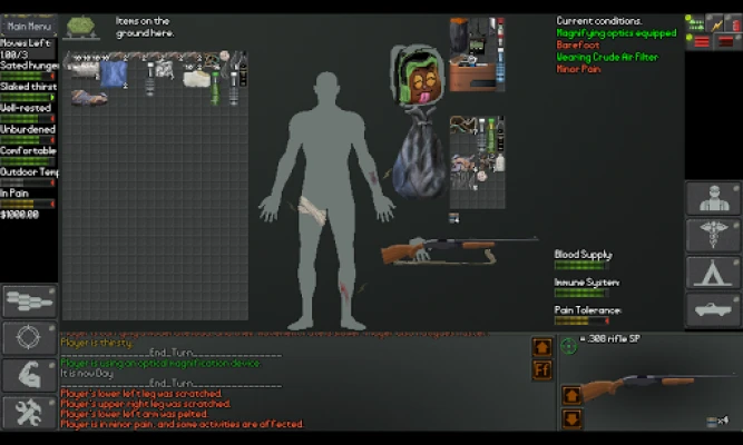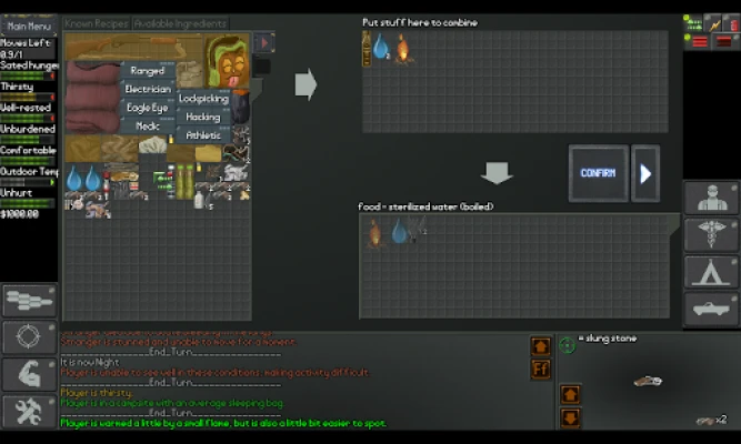 Realistic Metabolism - Hypothermia, fatigue, thirst, hunger, disease, intoxication, shelter...everything is tracked.