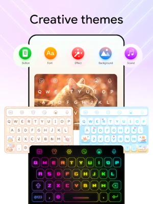 LED-style keyboard themes: Includes a variety of neon-lit keyboard themes in different colors.