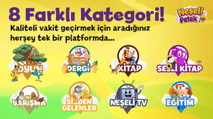 Neşeli Petek 7’den 77’ye herkes için içerikler sunar. Özellikle ise okul öncesi, ilkokul ve ortaokul çağı çocukların bilişsel, sosyal, duygusal, fiziksel ve ahlaki gelişimlerine yardımcı olmak için içerikler kurgular ve geliştirir.