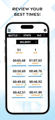 STATISTICS & LEADERBOARDS ◆ Review your best times ◆ Replay specific scrambles. ◆ See average times, 3 out of 5, 10 out of 12, last 50 and more statistics. ◆ See if you are improving over time with trends icons.