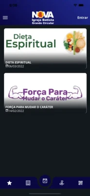 * Conteúdos (Áudio/Vídeo): Permite visualizar e ouvir os conteúdos da Igreja disponíveis no App;
