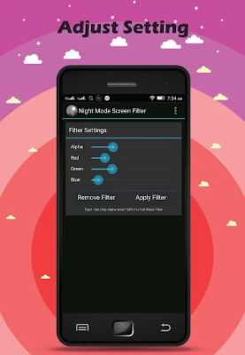 Night Mode Screen Filter main goal is to reduce the brightness of your screen lower than you can achieve with the default settings.