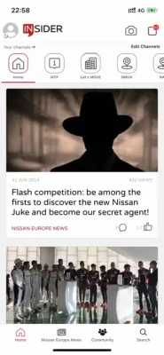 ● Nissan Insider brings you closer and gives insights on Nissan Europe’s corporate news, wellbeing, brand and product updates, competitions and activities happening within the Nissan working facilities - right at your fingertips.