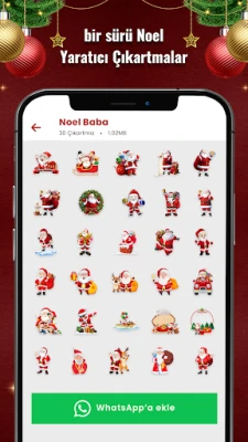 👉🏻 WhatsApp'a Noel Çıkartma paketi eklemek için "WhatsApp'a Ekle" düğmesine tıklayın.