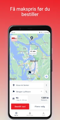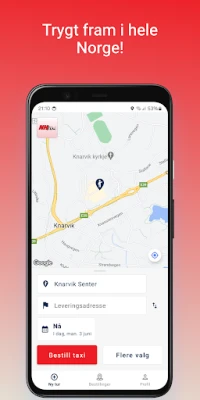 Skal du ha taxi der du er nå med en gang er det trykker du bare bestill-knappen. Resten går automatisk. Ha en fin reise!