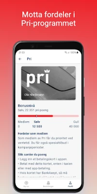 - Vi har et bonussystem som gir deg poeng for alle turer som er betalt med kort. Du kan se din bonussaldo og bonusfordeler i appen.