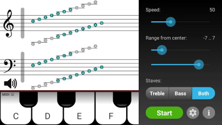⚙️ Customizable Practice Sessions Adjust the speed of the notes and select the range of notes you want to practice. Explore different key signatures to hone your skills with sharps and flats.