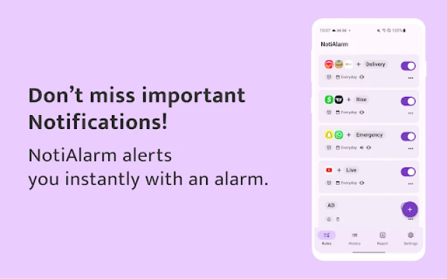 “NotiAlarm” is the smart notification app that ensures you never miss important alerts. By setting specific keywords, NotiAlarm will alert you immediately with an alarm whenever a crucial notification arrives. Filter notifications from selected apps to focus on what truly matters. You can also customize the days and times you want to receive notifications to fit your lifestyle.