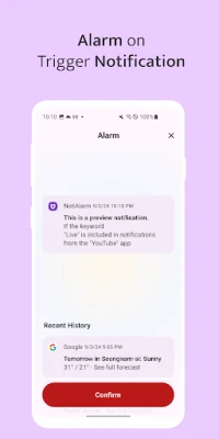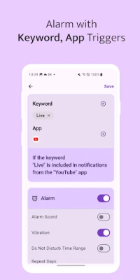 • Keyword-Based Notification Filtering: Set specific keywords, and NotiAlarm will alert you with an alarm whenever a notification containing those keywords arrives.