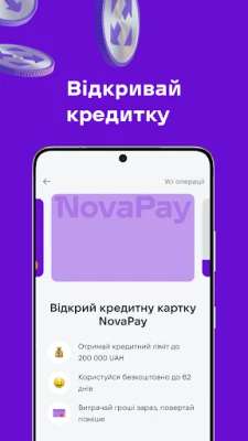 ● Платіжний сервіс NovaPay — це перша в Україні небанківська фінансова установа, яка випускає платіжні картки, для того щоб зручно проводити будь-які оплати та платежі через додаток.