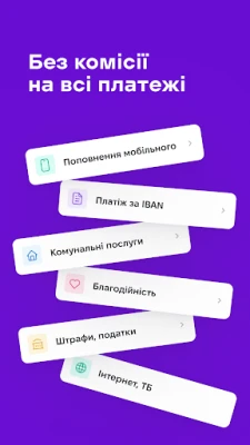 ● Поповнення картки, оплати та платежі, переказ коштів, зняття готівки — без комісії.