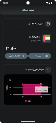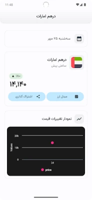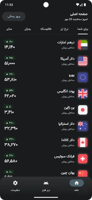 امکانات نرم افزار - نرخ ارز به صورت لحظه ای - قیمت طلا و سکه - مشاهده قیمت ارزهای دیجیتال - نمودار تغیرات روزانه قمیت ارز ها - ماشین حساب تبدیل واحدهای پولی