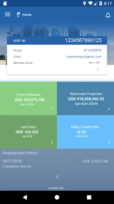 It allows you to access your E-Statement and monitor your transactions at NSSF. The app is simple to use and provides you a convenient, easy and safe way to contact NSSF anytime and anywhere.