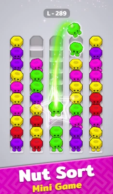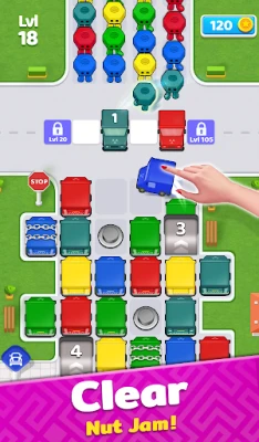 Your mission? Clear the nut jam! Strategically move nuts to clear the jam by the car. This tests your color sorting skills and sorting puzzle skills.