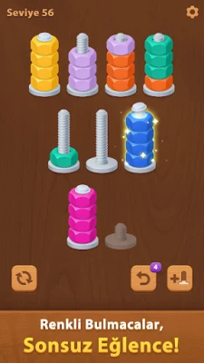 Canlı Görsel ve Ses: Oyun, somun ve cıvata dünyasını canlandıran canlı grafikler ve animasyonlarla parlıyor.Sakinleştirici fon müziği ve tatmin edici ses efektleriyle birleşen oyun, oyuncuların saatlerce kendilerini kaptırabilecekleri huzurlu ama sürükleyici bir atmosfer yaratıyor.Oyunun görsel ve işitsel öğeleri, oyuncunun deneyimini zenginleştirmek için tasarlanmış olup, her oturumu sadece bir oyun değil, bir yolculuk haline getiriyor.