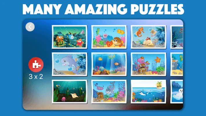 Each puzzle features a different beautiful scene drawn by a professional cartoon artist, and a unique reward when the jigsaw puzzle is completed. Scenes include things like cute fish, little mermaids, or crabs
