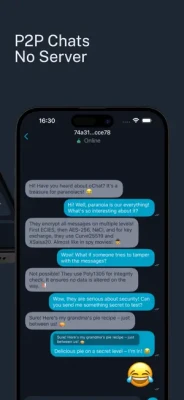 4) No Servers or Backend - All messages are transmitted directly between devices, without using servers, eliminating the possibility of data leaks.