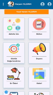 Eğer sizler de kurumsal anlamda planlı ve düzenli bir eğitim/öğretim dönemine girmek istiyorsanız, Okulmobil tam size göre. -Aktivite İzin -Anket -Bülten -Dökümantasyon -Kiosk kartlı giriş çıkış -Günlük -Duyuru -Kişiselleştirilmiş Galeri -Mesajlaşma -Ödevler -Yemek Listesi -Ödeme Takibi