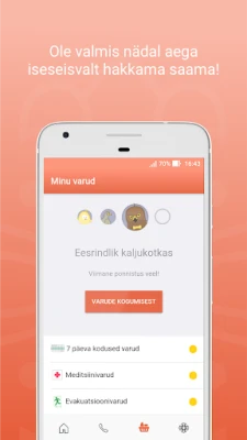 Inimesed leiavad rakendusest ka nädalaseks iseseisvaks hakkamasaamiseks mõeldud koduste ning evakuatsioonivarude nimekirja ning rakendus võimaldab testida enda varustatuse taset. Lisaks on rakendusse koondatud erinevad kasulikud telefoninumbrid, millele saab keskkonnast otse helistada.