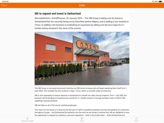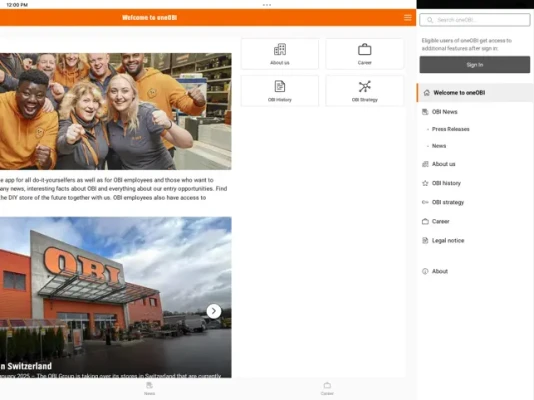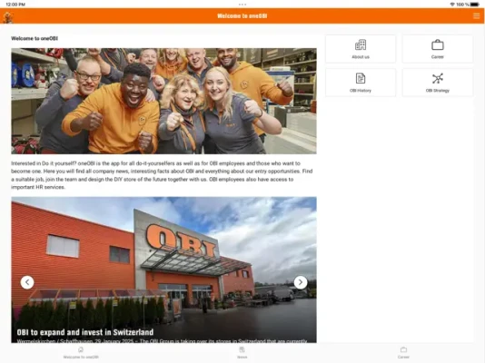 Interested in do it yourself? oneOBI is the app for all DIY enthusiasts as well as for OBI employees and those who want to become one. Here you will find all company news, press releases, facts and figures about OBI and everything about our entry opportunities. Find a suitable position, join the team and shape the DIY store of the future together with us. Authorized users also have access to important HR services.