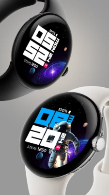 Digital interactive watch face with a space theme, animated galaxies in the background, and flying astronauts who can be interacted with by tapping the watch screen. Features : - 12/24 hour digital - Animated background ( Galaxy) - Interactive (Astronaut) - Customize digit color - Customizable info - App Shortcut - Always On Display