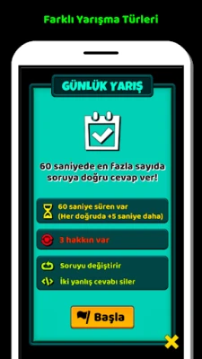 Oyun içerisinde bu yüzlerce Osmanlı Tarihi sorusunun yanında farklı yarışma türleri (leveller, 1v1 düello, günlük yarış), detaylı istatistikler (oyuncu rekorları, oyun rekorları), rekabetçi sıralamalar (günlük ve tüm zamanlar) ve daha birçok sürpriz içerik sizi bekliyor.