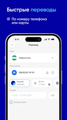 Делайте переводы на карту или между счетами OSON с 0% комиссией, а также переводите на карты UZCARD и HUMO родным или друзьям со специальной сниженной комиссией.