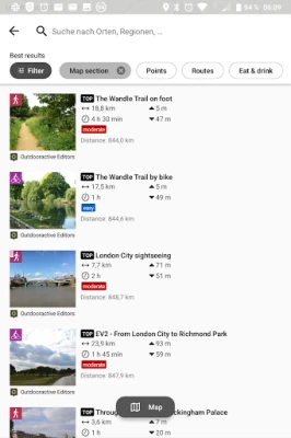 Almanca'nın konuşulduğu ülkelerde, mevcut olan tüm tematik rota ağları da dahil, detaylı Outdooractive haritaları kış ve yaz stilinde mevcuttur. OSM haritaları dünya genelinde kullanılabilir.