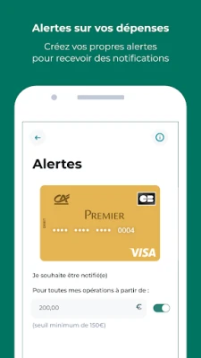 - Choisissez d’être alerté sur vos dépenses par cartes bancaires : Choisissez un montant au-delà duquel vous souhaiter recevoir une notification.