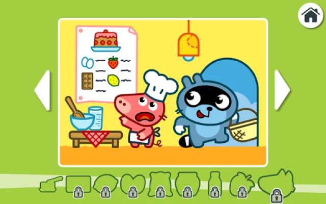 Pango will have to bring back 8 ingredients to Pig's kitchen, 8 tools for Fox's rocket, sports equipment for Squirrel, and crayons for Rabbit's drawing…