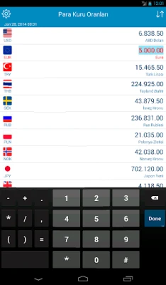 - Listeden herhangi bir para girilen tutarın Dönüşüm;
