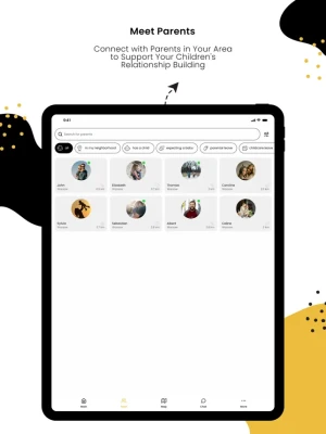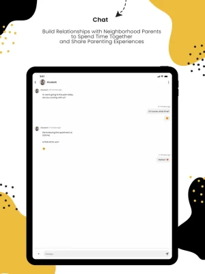 With the parents in the neighborhood search feature, you can easily find parents in your area who share similar interests or have children of a similar age. With just a few clicks, you can connect and arrange a meetup for a walk or a trip to the playground. Our chat function enables quick and secure communication, making it easy to organize your gathering.