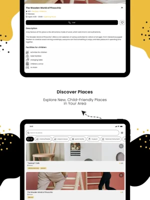 In the app, you’ll also discover numerous child-friendly places worth visiting. You’ll find recommendations for cafes, restaurants, play areas, parks, and other attractions that are perfect for family outings. The place descriptions include useful information, such as the availability of changing tables and parking options, and user reviews will help you make the best choice. Whether you're looking for a spot for a morning coffee with other parents or planning a child's birthday party, Parenteo helps you find the perfect venue.