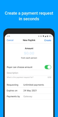 Accept online payments from your customers with ease through payment links: simply create a payment request, generate a link through the app and share it through any medium (e.g., email, messaging apps, social media). Your customers can then follow the link to make a quick payment using their preferred payment method. We support PayPal, Stripe and Square as payment gateways.