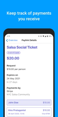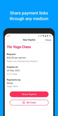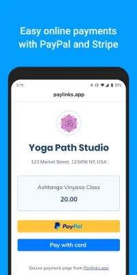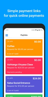 Paylinks is ideal for accepting small-value payments (such as for a yoga lesson or entry ticket to a social dance event): you don’t need any special device like a point-of-sale system or a payment terminal, and you don’t have to send invoices.